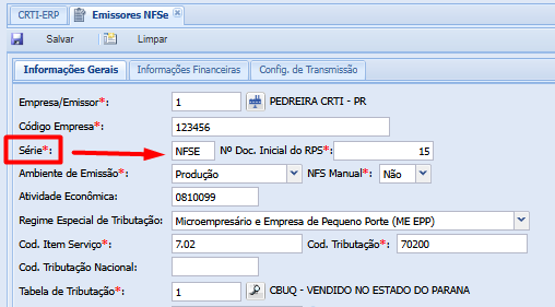 - Possibilidade de preencher a Série da NFSe com letras.